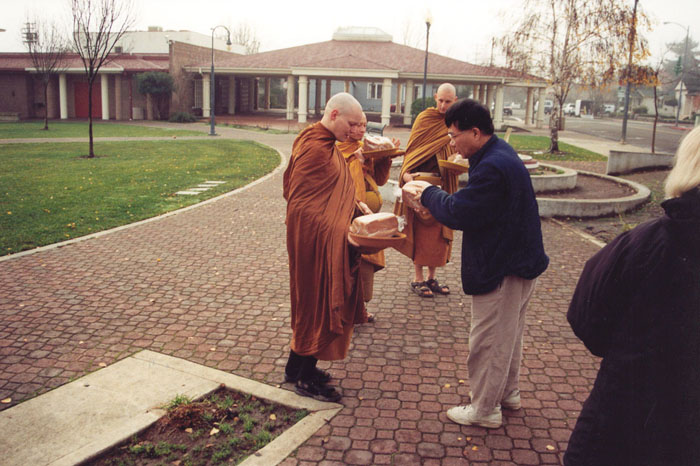Местные жители и наша группа поддержки принесли дары для монахов в городской парк.